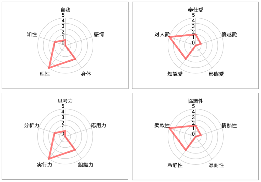 これらがグラフとして表れるので、特に個性が強いタイプの方は一目瞭然です。